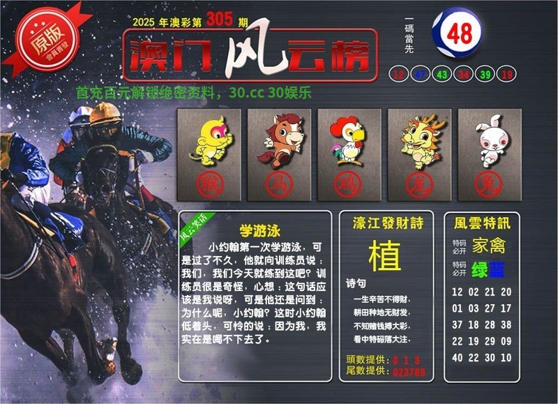 304期🧁江南才子🧁【六肖12码】开:马48中